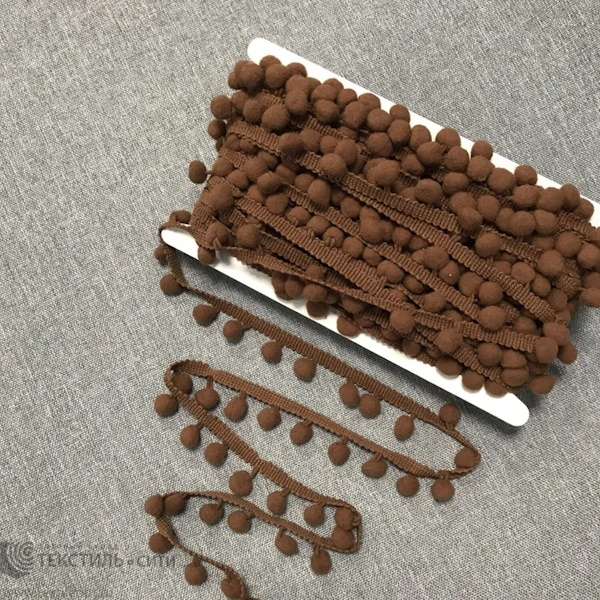 Тесьма-бахрома с помпонами Ш-21 мм Д-12 мм цв.т.коричневый