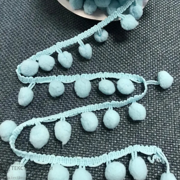 Тесьма-бахрома с помпонами Ш-21 мм Д-12 мм цв.голубой 47-02-129