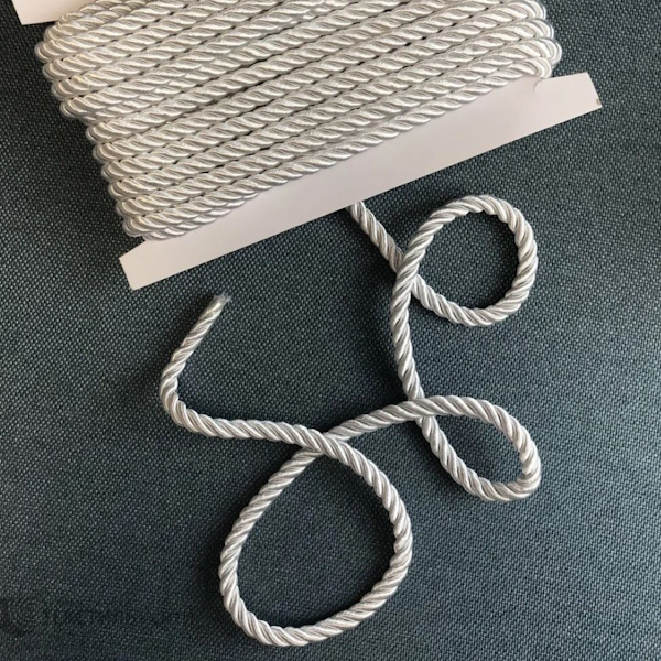 Шнур атласный витой однотонный 10 мм серебро