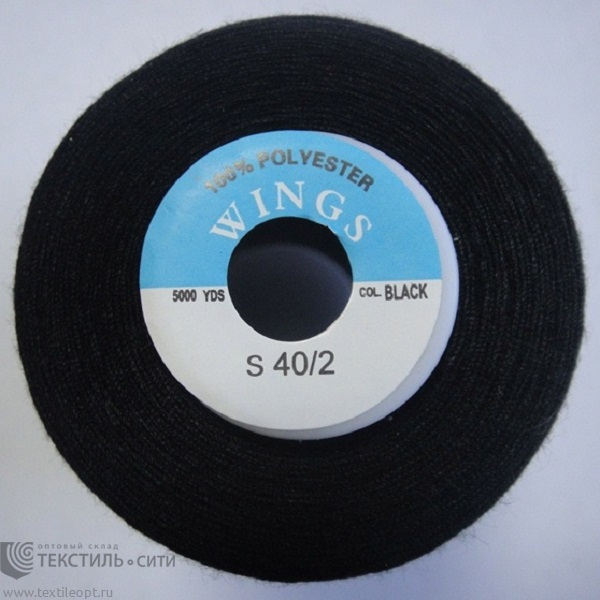 Нитки WINGS 100% полиэстер 40/2 5000 ярд ЧЕРНЫЙ